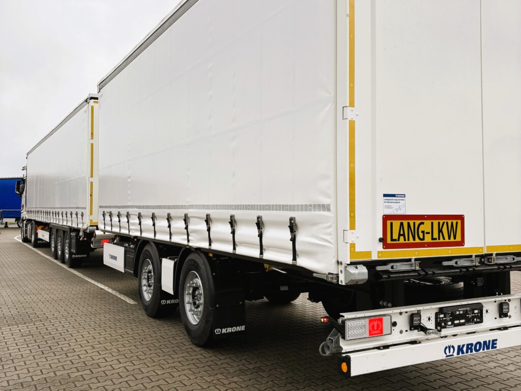 Jedná se o GIGA soupravu KRONE, která je podle německé legislativy označena jako LKW Typ 2 – tedy tahač s návěsem vybaveným spodním závěsem a připojeným vlekem.